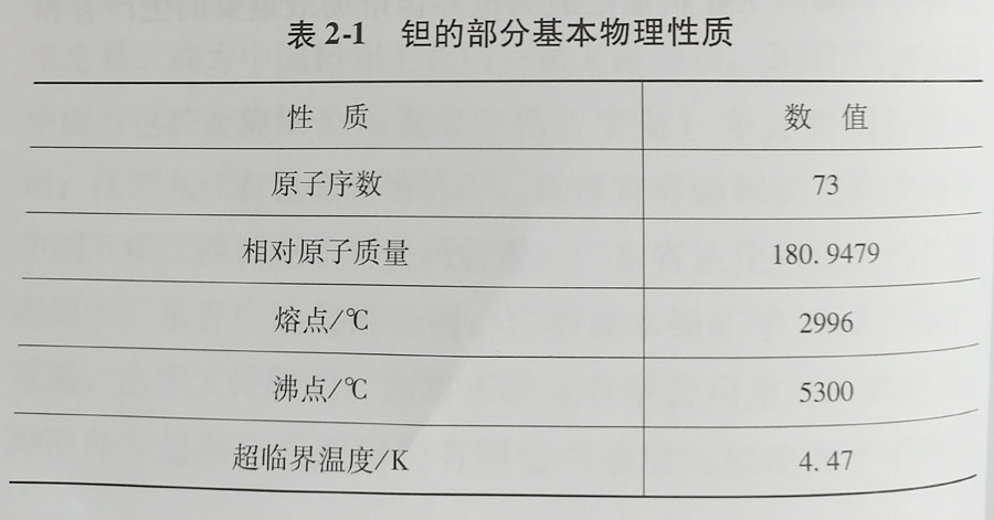 鉭具有熔點高、蒸汽壓低、冷加工性能好、化學穩定性高、抗液態金屬和酸堿腐蝕能力強、表面氧化膜介電常數大等一系列優異特點,是重要的現代功能性材料。